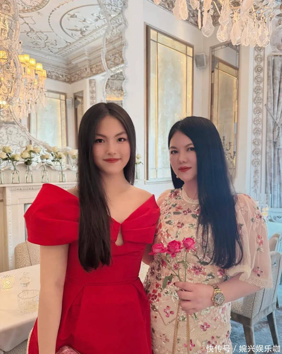 李湘的发型和女儿一模一样,穿衣风格也都是精致奢华风,母女两个的合影简直就是贵妇和名媛具象化了。